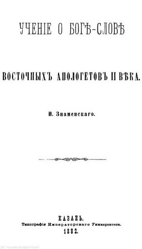 | Keywords: Знаменский И С Учение о Боге-Слове у восточных апологетов II века.jpg ru Титульный лист книги И С Знаменского Учение о Боге-Слове у восточных апологетов II века опубликованной в Казани в 1882 году 2016-04-21 08 43 04 http //e-heritage ru/ras/view/publication/general html id 42096236 author other versions PD-old-70-1923 Books about Christianity from Russia Books from Russia 1882 Books published in Kazan | ||||