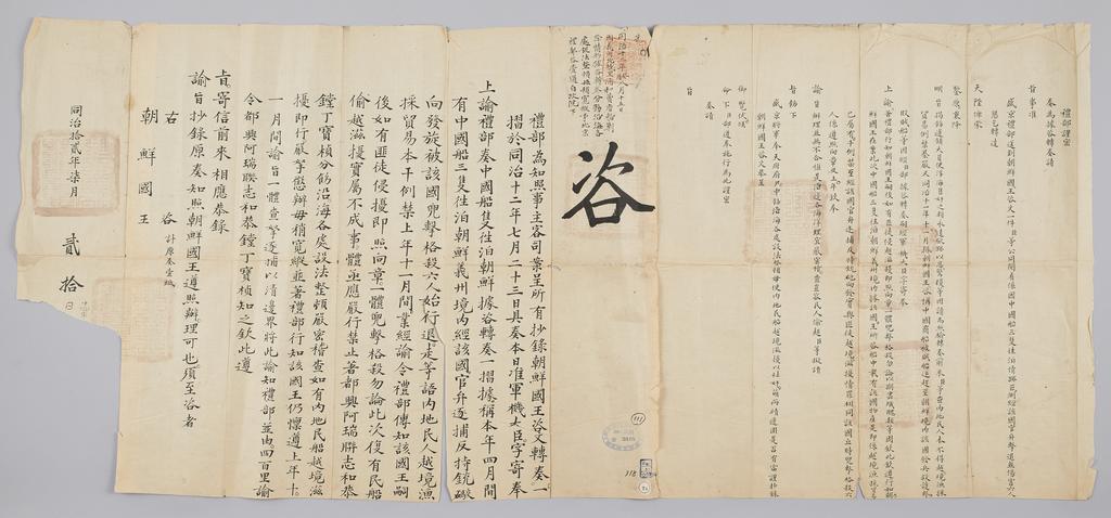| Keywords: 조선-청 외교문서(자문) 240.jpg 고종 10년 1873 7월 20 에 청국 예 에 조선국왕에게 보내 온 문 중국 배 3척 주 義州 역 침범하 기에 격퇴 켰는데 다 는 런 없도 엄히 다스려 달 는 조선 국왕 자문 황 에게 전달하 다고 알리는 내용 다 2016-07-19 http //www nl go kr/nl/search/SearchDetail nl category_code ct service KOLIS vdkvgwkey 1130331 colltype DAN_OLD place_code_info 172 place_name_info EB 94 94 EC A7 80 ED 84 B8 EC 97 B4 EB 9E 8C EC 8B A4 manage_code MA shape_code B refLoc null category srchFlag Y h_kwd E5 8F A4 E6 9C 9D51- EB 8B A428-318 lic_yn N mat_code RB 국립중앙도 조선국왕 청국예 other versions PD-Art Books from National Library of Korea Books from Korea 1873 in Relations of the Joseon Dynasty and the Qing Dynasty |