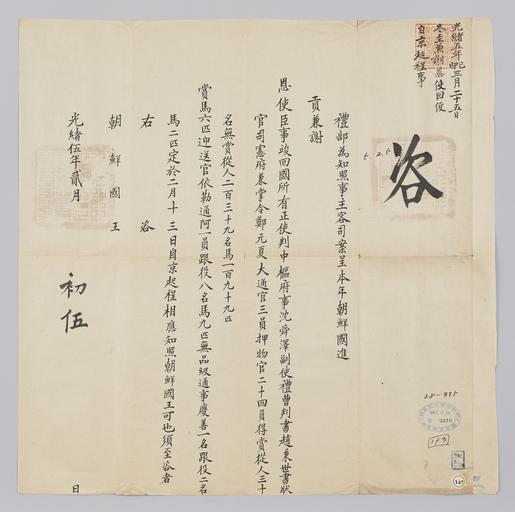 | Keywords: 조선-청 외교문서(자문) 257.jpg 고종 16년 1879 2월 5 에 청국 예 에 조선국왕에게 보내 온 문 조선에 파견 진공 겸 사 사 정사 심 등 행 마치고 2월 13 에 북경 다고 알리는 내용 다 2016-07-19 http //www nl go kr/nl/search/SearchDetail nl category_code ct service KOLIS vdkvgwkey 1130111 colltype DAN_OLD place_code_info 172 place_name_info EB 94 94 EC A7 80 ED 84 B8 EC 97 B4 EB 9E 8C EC 8B A4 manage_code MA shape_code B refLoc null category srchFlag Y h_kwd E5 8F A4 E6 9C 9D51- EB 8B A428-335 lic_yn N mat_code RB 국립중앙도 조선국왕 청국예 other versions PD-Art Books from National Library of Korea Books from Korea 1879 in Relations of the Joseon Dynasty and the Qing Dynasty |