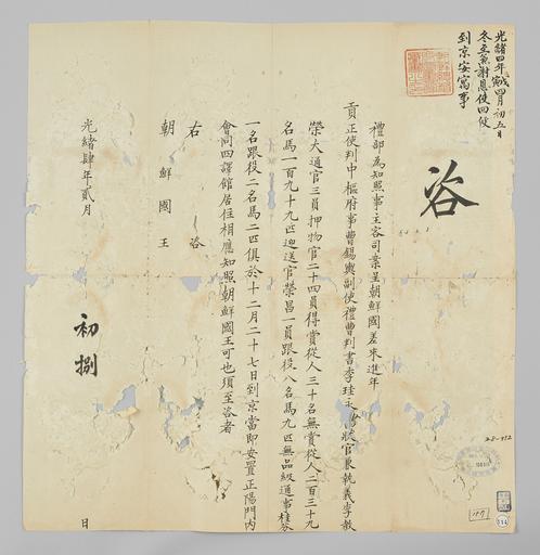 | Keywords: 조선-청 외교문서(자문) 274.jpg 고종 15년 1878 2월 8 에 청국 예 에 조선국왕에게 보내 온 문 조선에 진공 겸 사 사 보낸 정사 조 여 등 행 작년 12월 27 에 북경에 도착하여 회동 사역 에 머물고 있 알리는 내용 다 2016-07-19 http //www nl go kr/nl/search/SearchDetail nl category_code ct service KOLIS vdkvgwkey 43348197 colltype DAN_OLD place_code_info 172 place_name_info EB 94 94 EC A7 80 ED 84 B8 EC 97 B4 EB 9E 8C EC 8B A4 manage_code MA shape_code B refLoc null category srchFlag Y h_kwd E5 8F A4 E6 9C 9D51- EB 8B A428-352 lic_yn N mat_code RB 국립중앙도 청국 예 급 other versions PD-Art Books from National Library of Korea Books from Korea 1878 in Relations of the Joseon Dynasty and the Qing Dynasty |