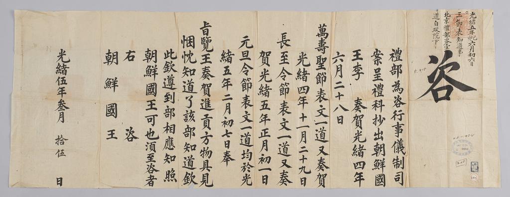 | Keywords: 조선-청 외교문서(자문) 276.jpg 고종 16년 1879 3월 15 에 청국 예 에 조선국왕에게 보내 온 문 해 조선국왕 올린 만수성절 문 장 령절 문 원단령절 문 황 에게 아뢰었 알리는 내용 다 2016-07-19 http //www nl go kr/nl/search/SearchDetail nl category_code ct service KOLIS vdkvgwkey 1130099 colltype DAN_OLD place_code_info 172 place_name_info EB 94 94 EC A7 80 ED 84 B8 EC 97 B4 EB 9E 8C EC 8B A4 manage_code MA shape_code B refLoc null category srchFlag Y h_kwd E5 8F A4 E6 9C 9D51- EB 8B A428-354 lic_yn N mat_code RB 국립중앙도 조선국왕 청국예 other versions PD-Art Books from National Library of Korea Books from Korea 1879 in Relations of the Joseon Dynasty and the Qing Dynasty |