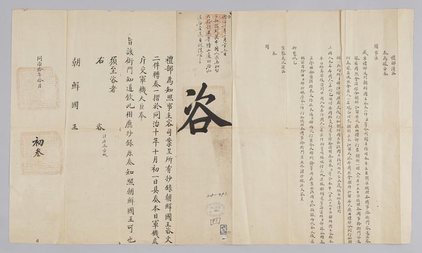 | Keywords: 조선-청 외교문서(자문) 307.jpg 고종 8년 1871 10월 3 에 청국 예 에 조선국왕에게 보내 온 문 황해도 백령진에 류해 온 중국 9명과 영 英 ·포국 布 人 2명 큰 배 잘 돌려 보냈다는 조선국왕 자문 2건 받았다고 알리는 내용 다 2016-07-19 http //www nl go kr/nl/search/SearchDetail nl category_code ct service KOLIS vdkvgwkey 1130391 colltype DAN_OLD place_code_info 172 place_name_info EB 94 94 EC A7 80 ED 84 B8 EC 97 B4 EB 9E 8C EC 8B A4 manage_code MA shape_code B refLoc null category srchFlag Y h_kwd E5 8F A4 E6 9C 9D51- EB 8B A428-391 lic_yn N mat_code RB 국림중앙도 조선국왕 청국예 other versions PD-Art Books from National Library of Korea Books from Korea 1871 in Relations of the Joseon Dynasty and the Qing Dynasty |
