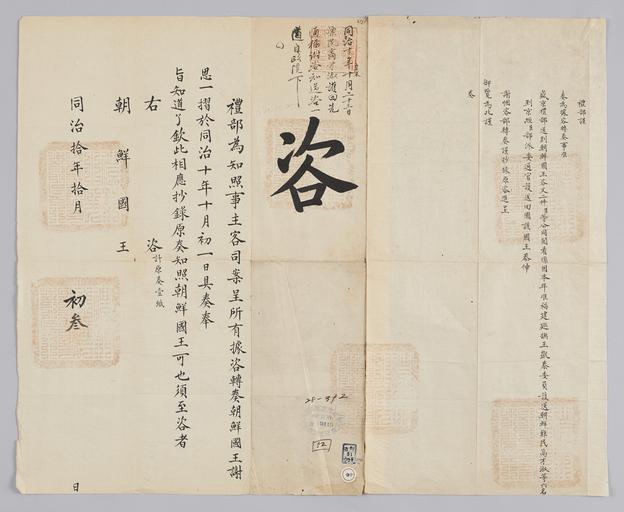 | Keywords: 조선-청 외교문서(자문) 308.jpg 고종 8년 1871 10월 3 에 청국 예 에 조선국왕에게 보내 온 문 조선 민 고재숙 高才淑 등 6명 돌려보내 것에 해 조선국왕 보낸 사 를 황 에게 아뢰었다고 알리는 내용 다 2016-07-19 http //www nl go kr/nl/search/SearchDetail nl category_code ct service KOLIS vdkvgwkey 1130390 colltype DAN_OLD place_code_info 172 place_name_info EB 94 94 EC A7 80 ED 84 B8 EC 97 B4 EB 9E 8C EC 8B A4 manage_code MA shape_code B refLoc null category srchFlag Y h_kwd E5 8F A4 E6 9C 9D51- EB 8B A428-392 lic_yn N mat_code RB 국립중앙도 조선국왕 청국예 other versions PD-Art Books from National Library of Korea Books from Korea 1871 in Relations of the Joseon Dynasty and the Qing Dynasty |