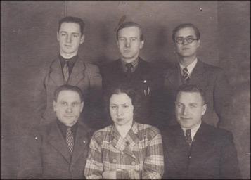 | Keywords: Рэдакцыя “Беларускай газеты” і “Голасу вёскі”.jpg Рэдакцыя Бела ускай газеты і Голасу вёскі Сядзяць злева нап ава Уладзіслаў Казлоўскі аталля А сеннева Аляксей Сянкевіч Стаяць злева нап ава Уладзімі Кушаль Антон Адамовіч Ка аленка інск снежань 1942 г 1942 http //naviny by/rubrics/society/2013/12/19/ic_articles_116_183994 невядомы PD-Belarus Anton Adamovič Uploaded with VicuñaUploader | ||||