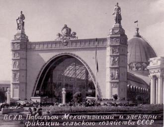 Keywords: "Павильон Механизации сельского хозяйства на ВСХВ 1954 года".jpg ru сейчас ут ачен ф из ге б СССР и ко она с п офилем Ленина - Сталина own Author 1954-08 Pavillion Cosmos VDNKh