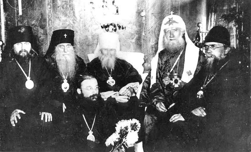 | Keywords: Патриарх Тихон в гостях у бывшего митрополита Московского и Коломенского Макария (Невского) в Николо-Угрешском монастыре (2).jpg  ru Пат иа х Тихон в гостях у бывшего мит ополита  осковского и Коломенского  ака ия  евского в  иколо-Уг ешском монасты е Рядом с ними слева нап аво священномученики епископ Се пуховский А сений Жадановский а хиепископ Бийский Иннокентий Соколов с цветами - епископ Волоколамский Феодо Поздеевский и к айний сп ава - епископ Звениго одский  иколай Доб он авов before 1925 http //blagoslovenie su/history/11 php не указано other versions Custom license marker 2016 03 25 PD-Russia Arsenius Zhadanovsky Theodore Pozdeyevsky Nicholas Dobronravov Tikhon of Moscow Macarius Nevsky |