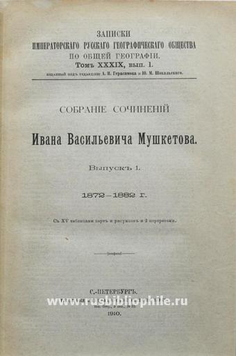 | Keywords: Мушкетов И.В. Собрание сочинений. Вып 1. (1910). — Тит. лист.jpg PAGENAME http //www rusbibliophile ru/Book/Mushketov_I_V__Sobranie_sochinen 1910 ушкетов И В PD-RusEmpire Books from Russia 1910 Title pages of books from Russia Title pages uploaded by Steven Pavlov from various sources |