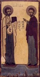 | Keywords: Кінець XV ст. Галичина. Дошка липова, левкас, темпера. 90 х 47 х 3,5. The Apostles Peter and Paul. Late 15th c. Galychyna. Tempera on gesso-grounded canvas pasted to the lime-wood panel. Національний художній музей України. Альбом. Київ, "Артанія Нова", 2003 |