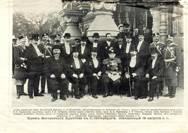 Keywords: собор воскресения христова соборвоскресенияхристова 1907 спас-на-крови спаснакрови православный храм православныйхрам санкт-петербург санктпетербург храм архитектура екатерининский канал екатерининскийканал канал грибоедова каналгрибоедова church of the savior on blood churchofthesavioronblood orthodox church on spilt blood churchonspiltblood st-petersburg stpetersburg cathedral of the resurrection of christ cathedraloftheresurrectionofchrist church екатеринбургская императорская гранильная фабрика екатеринбургскаяимператорскаягранильнаяфабрика sport team sport Источник не нашёл. Взято: Группа строителей храма Воскресения Христова в С. Петербурге, присутствовавших на освящении его. Сидят, справа: г. Феделли, младший помощник архитектора; Н. К. Бодаревский, художник; граф И. Д. Татищев, ктитор храма; строитель храма, проф. А. А. Парланд; А. А. Орехов, помощник проф. Парланда; г. Никонов, казенный десятник. Стоят, справа: гг. Педашенко, представ. фирмы серебр. изделий Хлебникова; Фролов, мозаичник; Федоров, бронзов. дел мастер; Сапожников; Б. К. Ковальский; Фридлендер, представитель фирмы Шукерт и Ко. (добавил Nickolay) www.citywalls.ru/house2749.html Источник не нашёл. Взято: Группа строителей храма Воскресения Христова в С. Петербурге, присутствовавших на освящении его. Сидят, справа: г. Феделли, младший помощник архитектора; Н. К. Бодаревский, художник; граф И. Д. Татищев, ктитор храма; строитель храма, проф. А. А. Парланд; А. А. Орехов, помощник проф. Парланда; г. Никонов, казенный десятник. Стоят, справа: гг. Педашенко, представ. фирмы серебр. изделий Хлебникова; Фролов, мозаичник; Федоров, бронзов. дел мастер; Сапожников; Б. К. Ковальский; Фридлендер, представитель фирмы Шукерт и Ко. (добавил Nickolay) www.citywalls.ru/house2749.html |