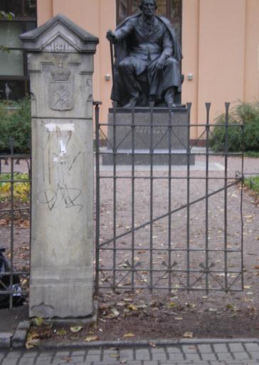 Keywords: Створка ворот на Итальянской 12.jpg Ство ка во от на Итальянской 12 Вдали памятник Ту геневу own 2007 Анд ей Italianskaya Street 12 October 2007 in Saint Petersburg