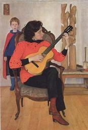 Keywords: Дмитрий Жилинский. Татьяна Павлова с Гитарой. 1975. Картон, темпера, 60х41. art-call Artistically