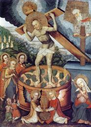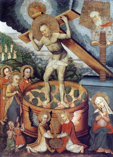 Keywords: Кінець XVII ст. Київщина. Дошка липова, левкас, темпера, ритування, сріблення, тоноване під золото. 100 х 71 х 5 (в обрамленні). Christ in the Winefat. Late 17th c. Kyivshchyna. Tempera, gold-tinted silvering, engraving on gesso-grounded three-piece lime-wood panel. Національний художній музей України. Альбом. Київ, "Артанія Нова", 2003. icon