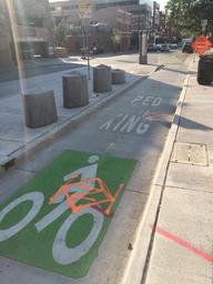 Keywords: bike lane bicycle bulb out bus bollard striping signage sign sidewalk ada construction road protected separated bulbout busstop busbulb