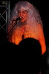 Keywords: pdx pop now 2015 summer outdoormusic outdoor concert stage sunlight tracks bridge drummer singer guitarist coco columbia jazz electronic rock weird spotlight people black background Coco Columbia Coco Columbia