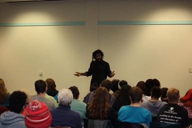 | Keywords: indoor Award-winning author Jason Reynolds returned to Kalamazoo on Wednesday, April 13, 2016, for a Meet the Author event at Central Library. Jason recently received the prestigious Walter Dean Myers Award for Outstanding Children’s Literature, and the American Library Association’s 2016 Coretta Scott King Honor Award for outstanding African American authors. Photo by Farrell Howe. www.kpl.gov Award-winning author Jason Reynolds returned to Kalamazoo on Wednesday, April 13, 2016, for a Meet the Author event at Central Library. Jason recently received the prestigious Walter Dean Myers Award for Outstanding Children’s Literature, and the American Library Association’s 2016 Coretta Scott King Honor Award for outstanding African American authors. Photo by Farrell Howe. www.kpl.gov |