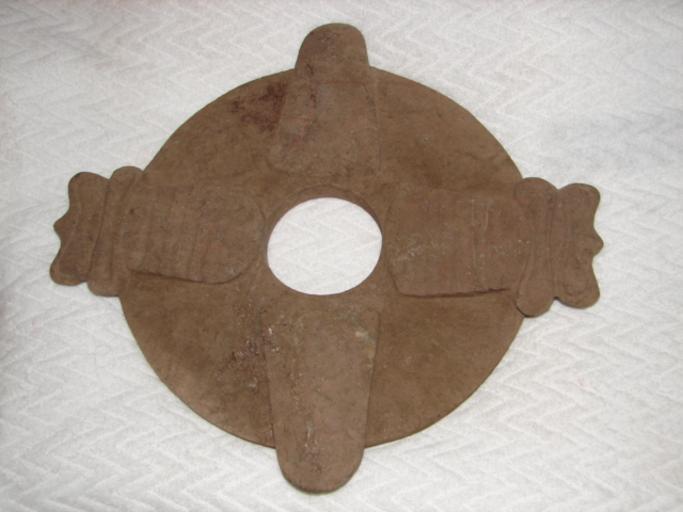 Keywords: 三星堆 珍寶 玉璧 牙璋 斧鋤器 126.jpg zh-tw 三星堆文化-年代約4800至2200年 三星堆文化-小件配飾品 數百種的 形 玉牙璋 玉琰 玉 玉鏟 魚牙璋 C形龍斧鋤器 猪龍斧鋤器 玉梟 玉鷹斧鋤器﹞ 具 異形獸斧鋤器 玉蟬複合體等 此器質化晶變 次晶增生 受人工拋光打磨 留原 風化 生 盤玩, 形特別 曲線流暢 雕工傳神 創意佳 術品 own 玉 富 2008-11-13 Jade discs