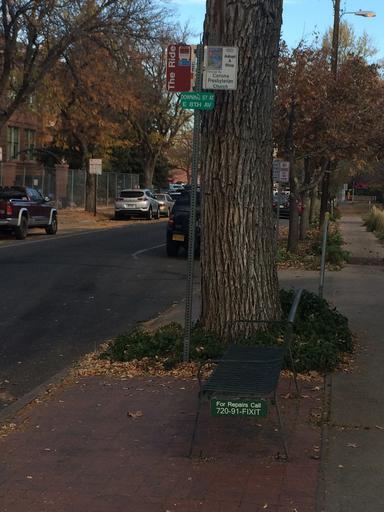 Keywords: bus busstop transit station rtd denver signage bench streetfurniture streettrees tree adopt sponsor sponsorship