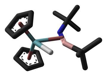 Keywords: Iminoborane-NbCp2-complex-from-xtal-1988-3D-sticks-noH.png Stick model of the complex of tert-butyl tert-butylimino borane tBu-BN-tBu with Cp<sub>2</sub>NbH from the crystal structure Hydrogen atoms omitted for clarity except the one bonded to niobium X-ray crystallographic data from http //dx doi org/10 1002/anie 198809581 Angew Chem Int Ed 1988 27 958 959 Own 2008-03-25 Ben Mills Benjah-bmm27 Images by Ben Mills Tert-butyl tert-butylimino borane Niobium complexes Cyclopentadienyl complexes |