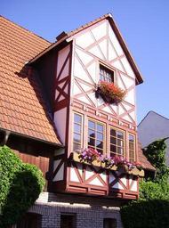 Keywords: Imitiertes Fachwerk in Ludwigshafen-Mundenheim.jpg half timbered house in Ludwigshafen Germany 2006-07-17 own Immanuel Giel Mundenheim