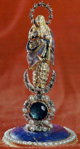 | Keywords: Immaculate Conception.JPG Artwork en Virgin of the Immaculate Conception pl Maria Panna Niepokalanego Poczęcia Gold pearls diamonds precious stones enamel Częstochowa Jasna Góra Treasury Object history < 1648 gift Jasna Góra Monastery Władysław IV of Poland own BurgererSF s 1630 Goldsmith Kraków Other versions Jasna Góra Treasury Goldsmithery from the Polish Vasa Collection Sculptures of Immaculata in Poland | ||||