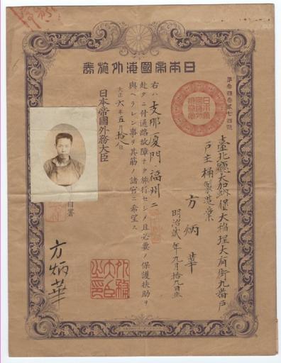 | Keywords: Imperial Japanese Overseas Passport Taiwan.JPG Imperial Japanese Overseas Passport issued in Taiwan in 1917 Taishō 6 西元1917年(大正6年) 台灣簽發的日 海外旅券 http //city udn com/v1/blog/article/article jsp uid LIU7255 f_ART_ID 455251 PD PD-old 1917 Passports of Japan Taiwan under Japanese rule |