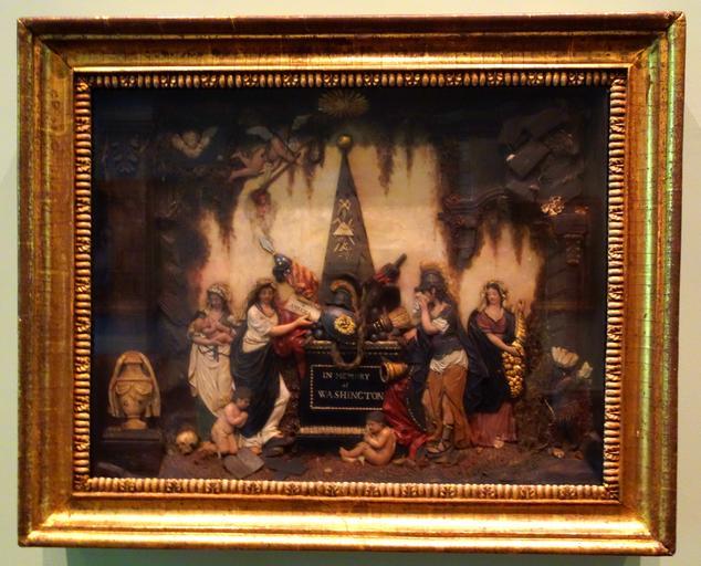 Keywords: In Memory of Washington by Johann Christian Rauschner, 1799-1800, wax relief with paint, paper, gilt, moss, shell, glass, wood, gesso - Winterthur Museum - DSC01720.JPG en Exhibit in the Winterthur Museum New Castle County Delaware USA Photography was permitted in the museum without restriction This work is in the public domain because the artist died more than 70 years ago 2013-05-08 15 24 24 own Daderot cc-zero Uploaded with UploadWizard Sculpture in Winterthur Museum |