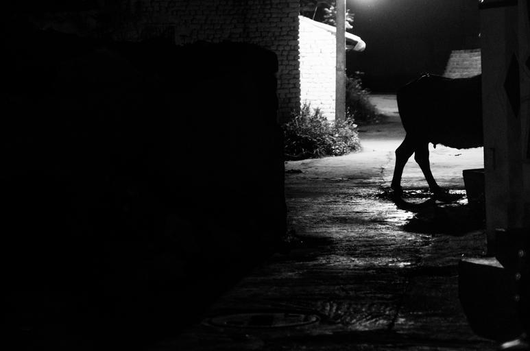Keywords: cow black night annojiguda dark darkness blackandwhite monochrome black and white Encountered on the walk home Annojiguda, Oct 2015 Encountered on the walk home Annojiguda, Oct 2015