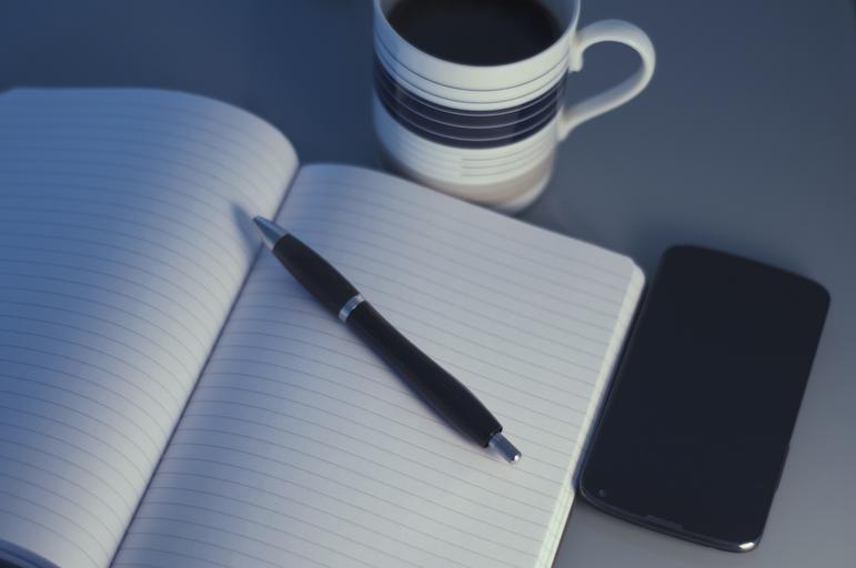 Keywords: in the workplace notebook office coffee coffee mug pen work home office business organization mobile phone smartphone inspiration cell phone to write
