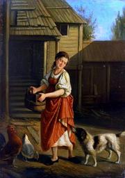 Keywords: In the yard by Sergei Gribkov the second half of the XIX century.jpg Artwork Creator Sergei Gribkov decade 1890 oil on canvas cm 66 48 Рязанский госуда ственный областной художественный музей имени И П Пожалостина ru ru </sup> Рязанский госуда ственный областной художественный музей имени И П Пожалостина ru Ryazan en Рязань ru Russia accession number 574-ж object history http //www artmuseum62 ru/collection/8/ LangSwitch Summary information about this painting on the official website of the museum Сводная инфо мация об этой ка тине на официальном сайте музея http //www artmuseum62 ru/upload/iblock/bba/bba66b5a90a6d99338f978d9905ef5d0 jpg other versions PD-old-100 Sergei Gribkov Paintings in Ryazan Regional Art Museum 1890s paintings from Russia 1890s paintings in Russia 19th-century genre paintings 1893 paintings from Russia 1893 oil on canvas paintings 19th-century paintings from Russia 19th-century genre paintings from Russia Paintings of peasants Peasant women in art Paintings of Russian peasants Paintings of Russian women in national dress Portraits of Russian peasant women Women at work in art