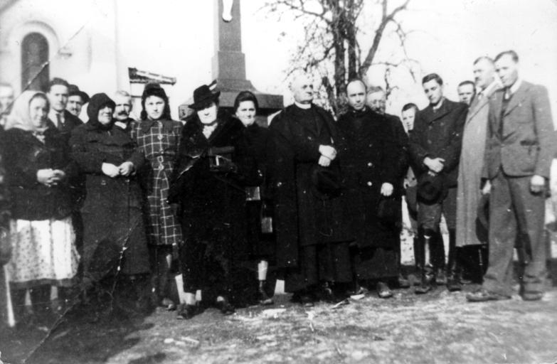 Keywords: In the yard of the Greek Catolic Church in Bocşa.jpg Bocşa Mirghesiu V F 2010 People from Transylvania Montreal ISBN 978-0-9868231-0-7 author 1940 PD-old 47 17 56 N 22 55 10 E cc-by-sa-3 0 Standing people People wearing hats Coats Headscarves Black and white photographs of groups Stone crosses Church facades Romania in the 1940s Greek Catholics from Romania Priests from Romania People from Bocșa Sălaj Vasile Popițiu People of Transylvania Greek Catolic Church in Bocșa Buttresses in Romania Looking at viewer Black and white photographs