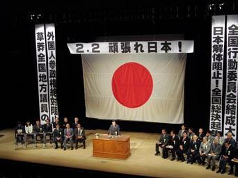 | Keywords: Inaugural Meeting of Gambare Nippon! Zenkokukoudouiinkai.jpg en Inaugural Meeting of Gambare Nippon Zenkokukoudouiinkai ja 頑張れ日 !全国行動委員会結成大会 zh-tw 加油日 !全 行動委員 成立大 own 守 2010-02-02 Political organizations of Japan Photographs of flags of Japan Toshio Tamogami |