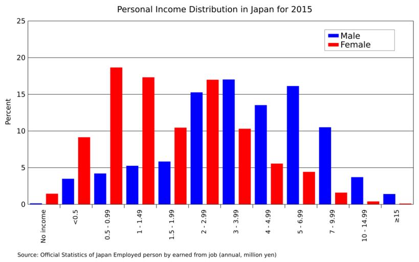 Keywords: Income distribution in Japan by sex.svg translate yes en Income distribution in Japan by sex in 2015 Japan has one of the greatest gender gaps in the world Data source Ministry of Internal Affairs and Communications 2016-05-26 own Delphi234 other versions current annually cc-zero Income distribution Economy of Japan Gender gap |