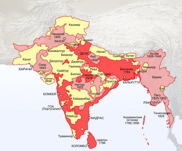 MAKE A MEME View Large Image India 1819-1909.svg Expansion of the British Empire in India Indochina and Ceylon<br>Red by 1819 <br>Pink by 1909 direct administration <br>Yellow Princely states by 1909 own based on <br>Topo data from Natural Earth naturalearthdata com PD ...
