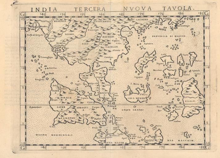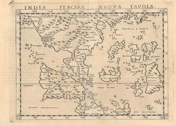 Keywords: India Tercera Nuova Tavola.jpg en The New Map of the Third India depicting the Indian Archipelago Indonesia and contrasted with Ptolemy's India within the Ganges India and India beyond the Ganges Indochina from Vincenzo Valgrisi's 1561 Geografia di Claudio Tolomeo printed at Venice 1561 https //www ulib niu edu/rarebooks/seamaps cfm Northern Illinois University Libraries Ptolemy other versions PD-old-70-1923 1561 maps Vincenzo Valgrisi Maps in Italian Geography Valgrisi Extra-Ptolemaic maps of East Asia 1561 |