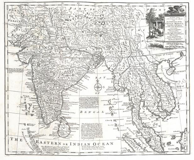 Keywords: IndiaMapBowen.jpg A new and accurate mapof the Empire of the Great Mogul together with India on both sides the Ganges and the adjacent countries Drawn fromt he most approved modern maps and charts The whole being regulated by Astron's observations http //beinecke library yale edu/dl_crosscollex/brbldl_getrec asp fld img id 1012285 A complete atlas or distinct view of the known world; exhibited in sixty-eight maps in which the latitude and longitude of the principal places in different countries are laid down according to the latest discoveries 1752 Bowen Emanuel d 1767 PD-old-100 Old maps of the Indian Subcontinent 1752 maps of India |