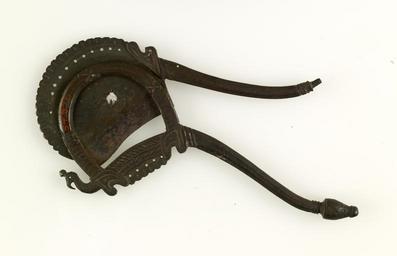 | Keywords: Indian - Betel-nut Cutter - Walters 54571 - Back.jpg  This betel-nut cutter is a finely engraved horseshoe-shaped loop with a broad cutter and curved hexagonal handles century 16 brass L 6 7/16 x W 3 3/8 in 16 3 x 8 5 cm accession number 54 571 20259 Lockwood de Forest Sale American Art Association 1922 no 69 Henry Walters city Baltimore Walters Art Museum Henry Walters Acquired by Henry Walters 1922 place of origin India Walters Art Museum license Mughal art in the Walters Art Museum Media contributed by the Walters Art Museum needs category review Areca nut cutters Kitchen utensils of India Lockwood de Forest Collection |