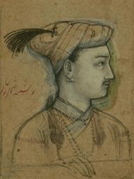 | Keywords: Indian - Single Leaf of a Portrait of Shahriyar - Walters W697 - Detail.jpg This Mughal drawing Walters manuscript leaf W 697 is of a young man identified by the inscription as Shahriyar who was the youngest son of the 4th Mughal Emperor Jahangir died 1037 AH/AD 1627 It dates to the 11th century AH/AD 17th Shahriyar is shown in profile position which is common in Mughal painting especially in depictions of court ceremonies The portrait is a preparatory drawing for a manuscript painting It may have been at a later stage that the window frame and hand were drawn to suggest a jharoka scene The buff-tinted and gold-sprinkled border is attributable to the12th century AH/AD 18th The portrait is inscribed shabih-i Shariyar in red Nasta'liq script 11th century AH/AD 17th century Mughal ink and pigments on paper mounted on pasteboard cm 18 12 5 ; Image cm 5 3 4 2 accession number W 697 26667 Henry Walters Baltimore date and mode of acquisition unknown Walters Art Museum Henry Walters Acquired by Henry Walters place of origin India Walters Art Museum license 2D 17th-century Mughal miniatures Mughal miniatures in the Walters Art Museum Media contributed by the Walters Art Museum needs category review |