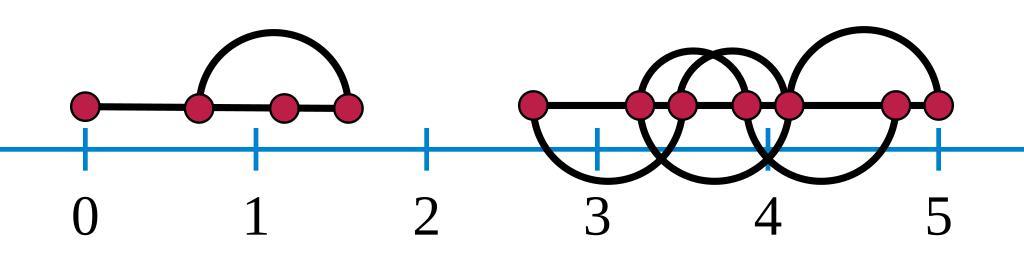 Keywords: Indifference graph.svg indifference graph formed from a set of points on the real line by connecting pairs of points whose distance is at most one 2014-04-20 22 42 29 own David Eppstein cc-zero Uploaded with UploadWizard Graph theory
