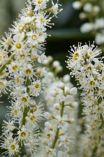 Keywords: inflorescence flower flowers bush close white tender plant spring prunus laurocerasus ornamental shrub