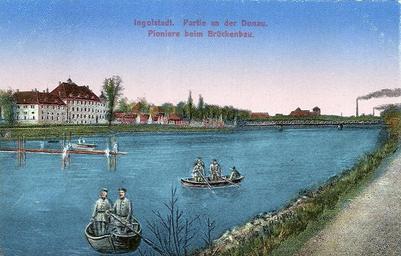 | Keywords: Ingolstadt - Pioniere.jpg Ingolstadt Blick auf das linke Donau-Ufer mit der Königlichen Realschule heute Christoph-Scheiner-Gymnasium Im Vordergrund errichten Pioniere eine Behelfsbrücke Ingolstadt view on the left banks of the Danube River with the Königliche Realschule today Christoph-Scheiner-Gymnasium In the foreground sappers are building a temporary brigde Ingolstadt vista sulla riva sinistra del Danubio con la Königliche Realschule oggi Christoph-Scheiner-Gymnasium In primo piano pionieri stanno costruendo un ponte provvisorio Ингольштадт вид на левый бе ег Дуная с Ка олевским еальным училищем ныне Гимназия им К истофа Шейне а а пе вом плане сапе и наводят в еменный мост private collection of Wolfgang Sauber Xenophon ca 1915 Anonymous PD-1923 anonymous-EU Danube in Ingolstadt Christoph-Scheiner-Gymnasium World War I postcards of German Empire Postcards of Ingolstadt Bridges over the Danube in Germany Wooden footbridges in Bavaria Iron truss road bridges in Bavaria Bridges in Ingolstadt |