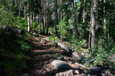 | Keywords: arizona coconino national forest coconinonationalforest flagstaff flagstaff ranger district flagstaffrangerdistrict forest service forestservice inner basin innerbasin inner basin trail innerbasintrail inner basin trail no. 29 innerbasintrailno29 san francisco mountain sanfranciscomountain san francisco peaks sanfranciscopeaks usfs caldera forest hike hiking mountain outdoors peaks trail volcano united states unitedstates outdoor landscape tree plant The Inner Basin Trail ascends from Lockett Meadow into the caldera of the San Francisco Peaks, an extinct volcano and home of the tallest peaks in Arizona. The first 1.7 miles of the trail winds through the extensive aspen forest flanking the upper reaches of the Peaks, joining the Waterline Trail briefly before following a jeep road into the caldera. The trail starts at an elevation of 8665 feet, gaining approximately 1200 feet over 2 miles on its way into the Inner Basin. The trail continues another 2 miles, gaining an additional 600 feet or so to join up with the Weatherford Trail. Photo by Deborah Lee Soltesz, August 2015. Credit: U.S. Forest Service, Coconino National Forest. For more information about this trail, see the Inner Basin No. 29 trail description on the Coconino National Forest website. The Inner Basin Trail ascends from Lockett Meadow into the caldera of the San Francisco Peaks, an extinct volcano and home of the tallest peaks in Arizona. The first 1.7 miles of the trail winds through the extensive aspen forest flanking the upper reaches of the Peaks, joining the Waterline Trail briefly before following a jeep road into the caldera. The trail starts at an elevation of 8665 feet, gaining approximately 1200 feet over 2 miles on its way into the Inner Basin. The trail continues another 2 miles, gaining an additional 600 feet or so to join up with the Weatherford Trail. Photo by Deborah Lee Soltesz, August 2015. Credit: U.S. Forest Service, Coconino National Forest. For more information about this trail, see the Inner Basin No. 29 trail description on the Coconino National Forest website. |