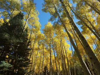 Keywords: inner basin trail innerbasintrail inner basin trail no. 29 innerbasintrailno29 inner basin innerbasin san francisco peaks sanfranciscopeaks san francisco mountain sanfranciscomountain coconino national forest coconinonationalforest usfs flagstaff autumn fall colors fallcolors forest service forestservice forest outdoor plant tree foliage Fall colors on the Inner Basin Trail, September 23, 2016. The Inner Basin Trail ascends from Lockett Meadow into the caldera of the San Francisco Peaks, an extinct volcano and home of the tallest peaks in Arizona. The first 1.7 miles of the trail winds through the extensive aspen forest flanking the upper reaches of the Peaks, joining the Waterline Trail briefly before following a jeep road into the caldera. The trail starts at an elevation of 8665 feet, gaining approximately 1200 feet over 2 miles on its way into the Inner Basin. The trail continues another 2 miles, gaining an additional 600 feet or so to join up with the Weatherford Trail. Photo by George Jozens, September 23, 2016. Source: U.S. Forest Service, Coconino National Forest. See Lockett Meadow Campground and Inner Basin No. 29 for information about this area of the Peaks on the Coconino National Forest website. Fall colors on the Inner Basin Trail, September 23, 2016. The Inner Basin Trail ascends from Lockett Meadow into the caldera of the San Francisco Peaks, an extinct volcano and home of the tallest peaks in Arizona. The first 1.7 miles of the trail winds through the extensive aspen forest flanking the upper reaches of the Peaks, joining the Waterline Trail briefly before following a jeep road into the caldera. The trail starts at an elevation of 8665 feet, gaining approximately 1200 feet over 2 miles on its way into the Inner Basin. The trail continues another 2 miles, gaining an additional 600 feet or so to join up with the Weatherford Trail. Photo by George Jozens, September 23, 2016. Source: U.S. Forest Service, Coconino National Forest. See Lockett Meadow Campground and Inner Basin No. 29 for information about this area of the Peaks on the Coconino National Forest website. |