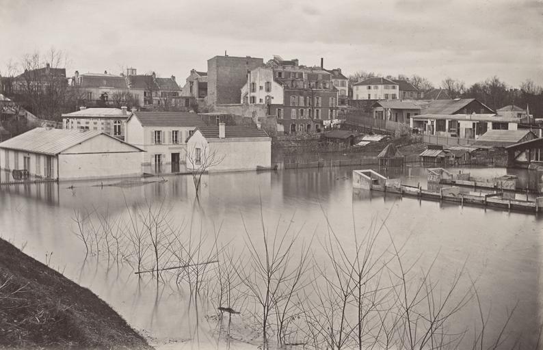 MAKE A MEME View Large Image Inondations de Fevrier 1876 - Auteuil 2.jpg Photograph Creator Hippolyte-Auguste Collard en City Police Préfecture Paris en Inondations de Fevrier 1876 Auteuil Flooded land with partly submerged buildings broken river banks depicted people ...