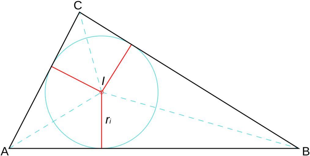 Keywords: Inradius.svg inraggio all'interno del triangolo con esplicitazione dell'incentro del incerchio e delle bisettrici Own 2008-01-26 Personline Incircles of triangles