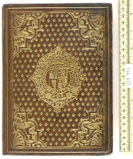 | Keywords: Inscriptiones historic- Regum Scotorum - Upper cover (c24b27).jpg Style Armorial Centre and cornerpiece Semis background of small tools; Caption Upper cover; Colour Brown; Edge Unspecified exhibition history Decorative Technique Tooled in gold; Cover Material Calf Unspecified object history Text 16c; Amsterdam; James I King of England 1603-1625 James VI of Scotland object type Cc-zero place of creation Binding England place of discovery To research armorials see British Armorial Bindings Database sponsored jointly by the Bibliographical Society and the University of Toronto http //armorial library utoronto ca British Library image http //www bl uk/catalogues/bookbindings/LargeImage aspx RecordId 020-000001010 ImageId ImageId 40110 Copyright BL Inscriptiones historic Regum Scotorum Uploaded with GWToolset Inscriptiones historic Regum Scotorum - Upper cover c24b27 http //www webarchive org uk/bldatasets/bindings/4615_4 jpg Bookbinding 17th-century bookbinding British Library Bookbindings |