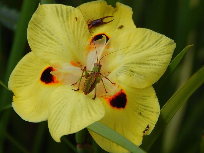 Keywords: insect invertebrate cricket nature animal antennas adult arthropod flower yellow flower