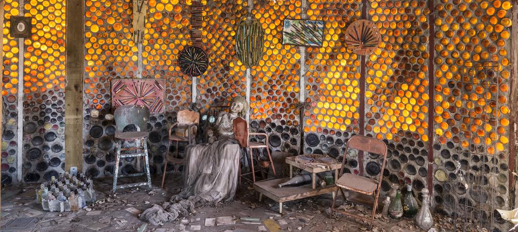 | Keywords: Inside one of the unusual structures at Grandma Prisbrey's Bottle Village in Simi Valley, California LCCN2013631392.tif 1 photograph digital tiff file color Notes Title date and keywords provided by the photographer ; Credit line The Jon B Lovelace Collection of California Photographs in Carol M Highsmith's America Project Library of Congress Prints and Photographs Division ; Gift; The Capital Group Companies Charitable Foundation in memory of Jon B Lovelace; 2012; DLC/PP-2012 063 ; Forms part of Jon B Lovelace Collection of California Photographs in Carol M Highsmith's America Project in the Carol M Highsmith Archive ; At age 60 Tressa Grandma Prisbrey began carting bottles home from the town dump to use as inexpensive building material initially for a wall between her and a neighboring turkey farm Over time she transformed her one-third acre rural lot into Bottle Village a folk-art fantasyland of shrines wishing wells mosaic walkways fountains follies and 15 structures all made from found objects 2013 Creator Carol M Highsmith Library of Congress Catalog http //lccn loc gov/2013631392 Image download https //cdn loc gov/master/pnp/highsm/24200/24214a tif Original url http //hdl loc gov/loc pnp/highsm 24214 No known restrictions on publication LOC-image highsm 24214 PD-Highsmith Images uploaded by Fæ The Jon B Lovelace Collection of California Photographs in Carol M Highsmith's America Project Library of Congress Prints and Photographs Division Jon B Lovelace Collection of California Photographs in Carol M Highsmith's America Project in the Carol M Highsmith Archive Photographs by Carol M Highsmith |