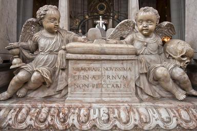 Keywords: Inskription på Gustav Vasas grav.jpg sv Inskription på Gustav Vasas grav i Uppsala domkyrka Texten är ett citat från den latinska bibelöversättningen Vulgata från Jesus Syraks vishet 7 40 Motsvarande vers är i Bibel 2000 Jesus Syraks vishet 7 36 och lyder Tänk på li­vets slut i allt vad du gör då kom­mer du ald­rig någon­sin att syn­da en Inscription on the tomb of Gustav I of Sweden in the Cathedral of Uppsala The text is from the Vulgate version of Sirach 7 40 2011-10-09 own Dcastor cc-zero Uploaded with UploadWizard King Gustav I of Sweden family grave Quotations from Ecclesiasticus Taken with Canon EOS 40D Sculptures of putti Sweden Uppsala Churches in Sweden photographed in 2011