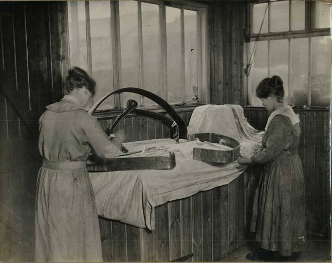 Keywords: ww1 firstworldwar war worlife1915 parsons munitions women female labourers work factory heaton newcastle industrial heritage industrialheritage black and white photograph blackandwhitephotograph digital image digitalimage insulating end connections endconnections 1914 - 18 191418 parsons' works parsonsworks shields road shieldsroad engineer charles parsons charlesparsons inventor steam turbine steamturbine rachel parsons rachelparsons industry ministry of munitions ministryofmunitions women of the war womenofthewar standing dress belt cloth material table timber wood window frame glass wall floor debris shoe mark grain fascinating striking unusual tool metal building roof blur cord lever hook hair black and white These images belong to the Parsons’ ‘Women Labourers’ photograph album, taken at Parsons’ Works on Shields Road during the First World War. (TWAM ref: 2402) The factory was founded by engineer Charles Parsons, best known for his invention of the steam turbine. In 1914, with the outbreak of war, Parsons’ daughter Rachel, one of the first three women to study engineering at Cambridge, replaced her brother on the board of directors, and took on a role in the training department of the Ministry of Munitions, supporting the increasing amount of women taking on jobs in industry to support the war effort. More information about Rachel Parsons and Parsons’ Works can be found in Great North Greats a guest post by David Wright. (copyright) We’re happy for you to share these digital images within the spirit of The Commons. Please cite 'Tyne & Wear Archives & Museums' when reusing. Certain restrictions on high quality reproductions and commercial use of the original physical version apply though; if you're unsure please email archives@twmuseums.org.uk These images belong to the Parsons’ ‘Women Labourers’ photograph album, taken at Parsons’ Works on Shields Road during the First World War. (TWAM ref: 2402) The factory was founded by engineer Charles Parsons, best known for his invention of the steam turbine. In 1914, with the outbreak of war, Parsons’ daughter Rachel, one of the first three women to study engineering at Cambridge, replaced her brother on the board of directors, and took on a role in the training department of the Ministry of Munitions, supporting the increasing amount of women taking on jobs in industry to support the war effort. More information about Rachel Parsons and Parsons’ Works can be found in Great North Greats a guest post by David Wright. (copyright) We’re happy for you to share these digital images within the spirit of The Commons. Please cite 'Tyne & Wear Archives & Museums' when reusing. Certain restrictions on high quality reproductions and commercial use of the original physical version apply though; if you're unsure please email archives@twmuseums.org.uk
