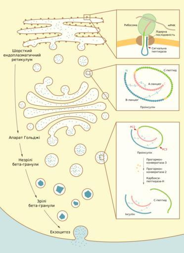 Keywords: Insulin biosynthesis.svg uk Схема біосинтезу інсуліну 2012-07-12 own Zlir'a Uploaded with UploadWizard Insulin Diagrams in Ukrainian